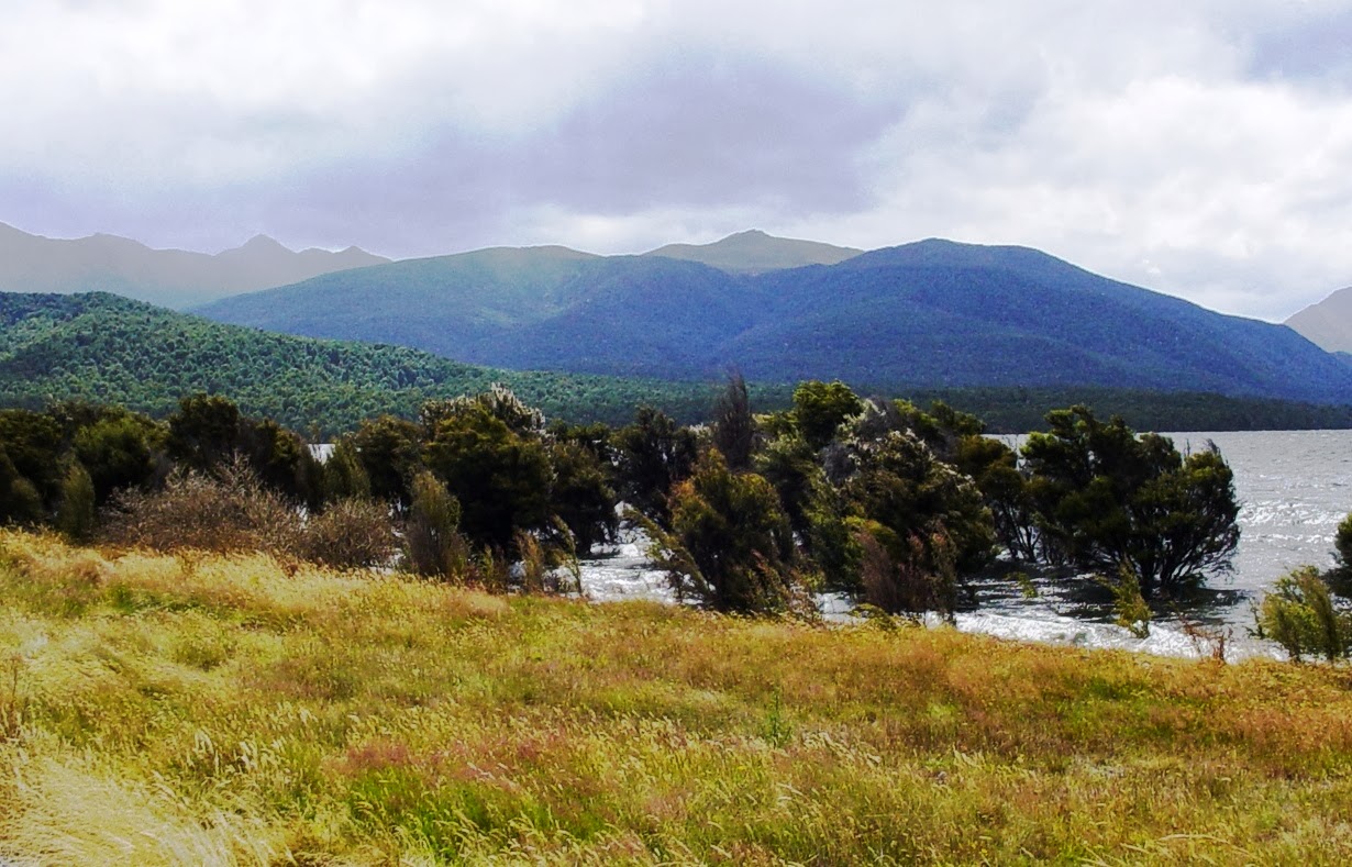 Viaggiando verso Te Anau il tempo è in peggioramento: correnti di aria fredda e piovosa rendono il paesaggio molto simile a quello dell'Europa del Nord, la Scozia in particolare. Sebbene sia estate, è impensabile non indossare qualcosa di caldo e impermeabile. Tempo da escursionisti tosti. Arrivati al Top Ten Holiday Park, dove pernotteremo, prenotiamo subito la traversata di Milford Sound per la mattina seguente, poi ci avviamo per una camminata lungo la riva del lago Te Anau. Una brezza tesa e gelida increspa la superficie nera dell'acqua. E' possibile fare a piedi il giro del lago, per quanto vasto, ma non riusciamo a spingerci oltre la chiusa. Pochissimi altri turisti, compreso uno in bicicletta, sfidano le intemperie e il vento impietoso. Noi torniamo intirizziti e ceniamo presto.
